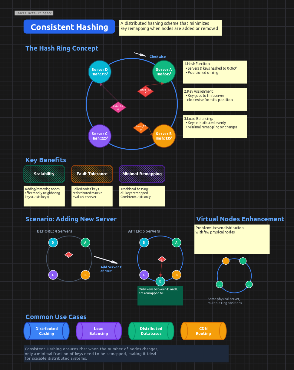 I asked it to create a diagram explaining consistent hashing, and it did surprisingly well! The explanation was clear and would probably pass an interview.