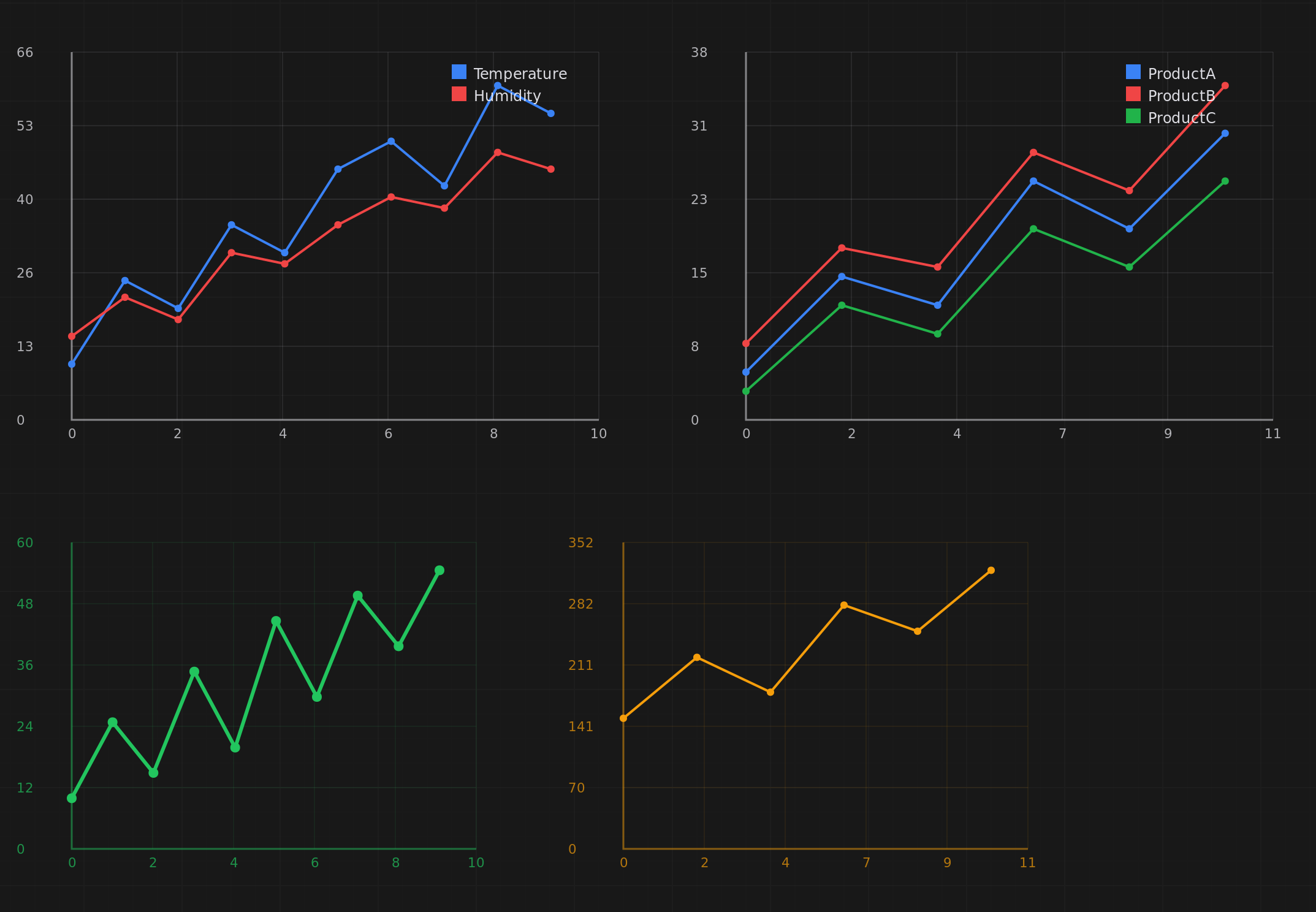 Plots auto-scale to fit the data range, display gridlines with actual values, and include legends for multi-line charts. Perfect for teaching statistics, visualizing experiment results, or creating live data dashboards.
